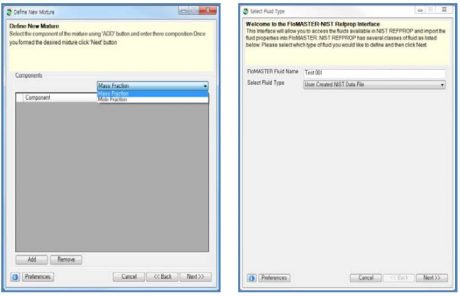 - User Created NIST Data File: NIST Data File을 사용하여 유체를 생성할 경우
